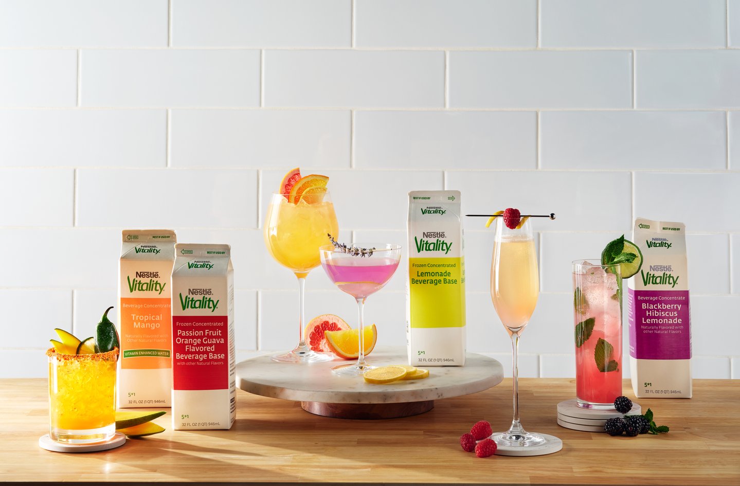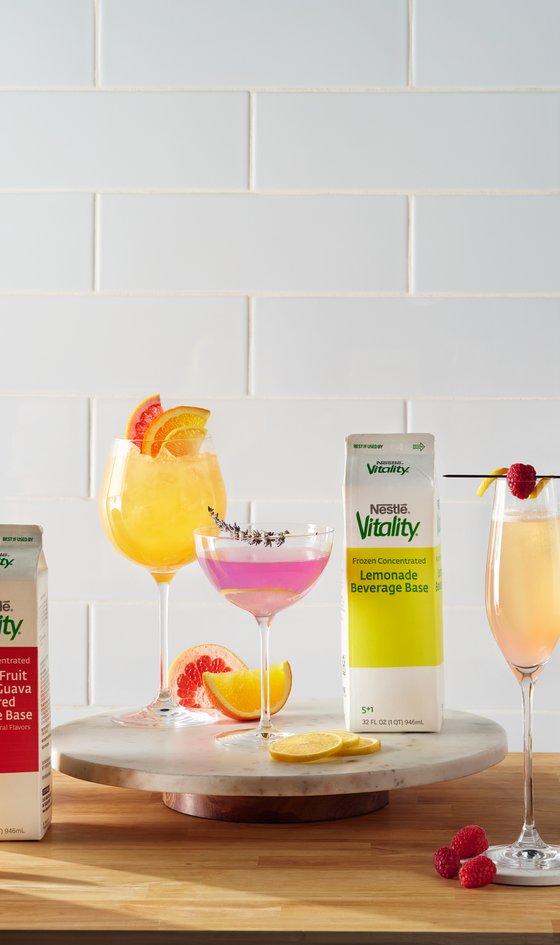 Substitute Vitality Peach Citrus Juice for Vitality Orange Juice for a classic Mimosa