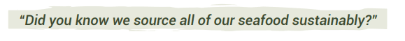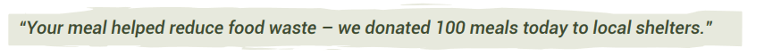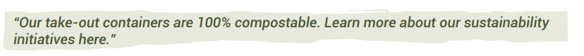 Ordering App: Consider pop-up screens or icons on menu items deemed sustainable. On the confirmation screen, remind audiences to recycle or reuse to-go packaging.